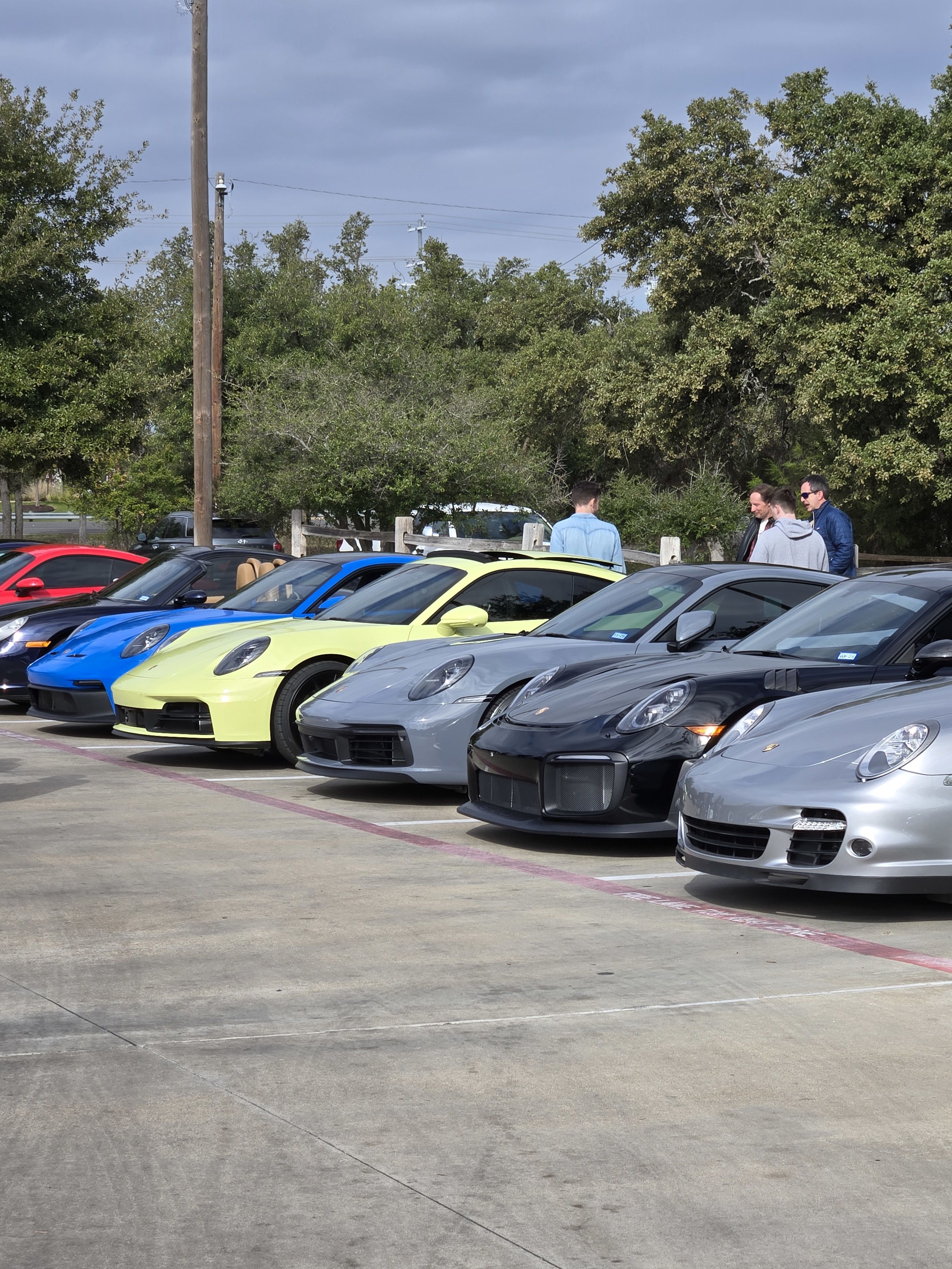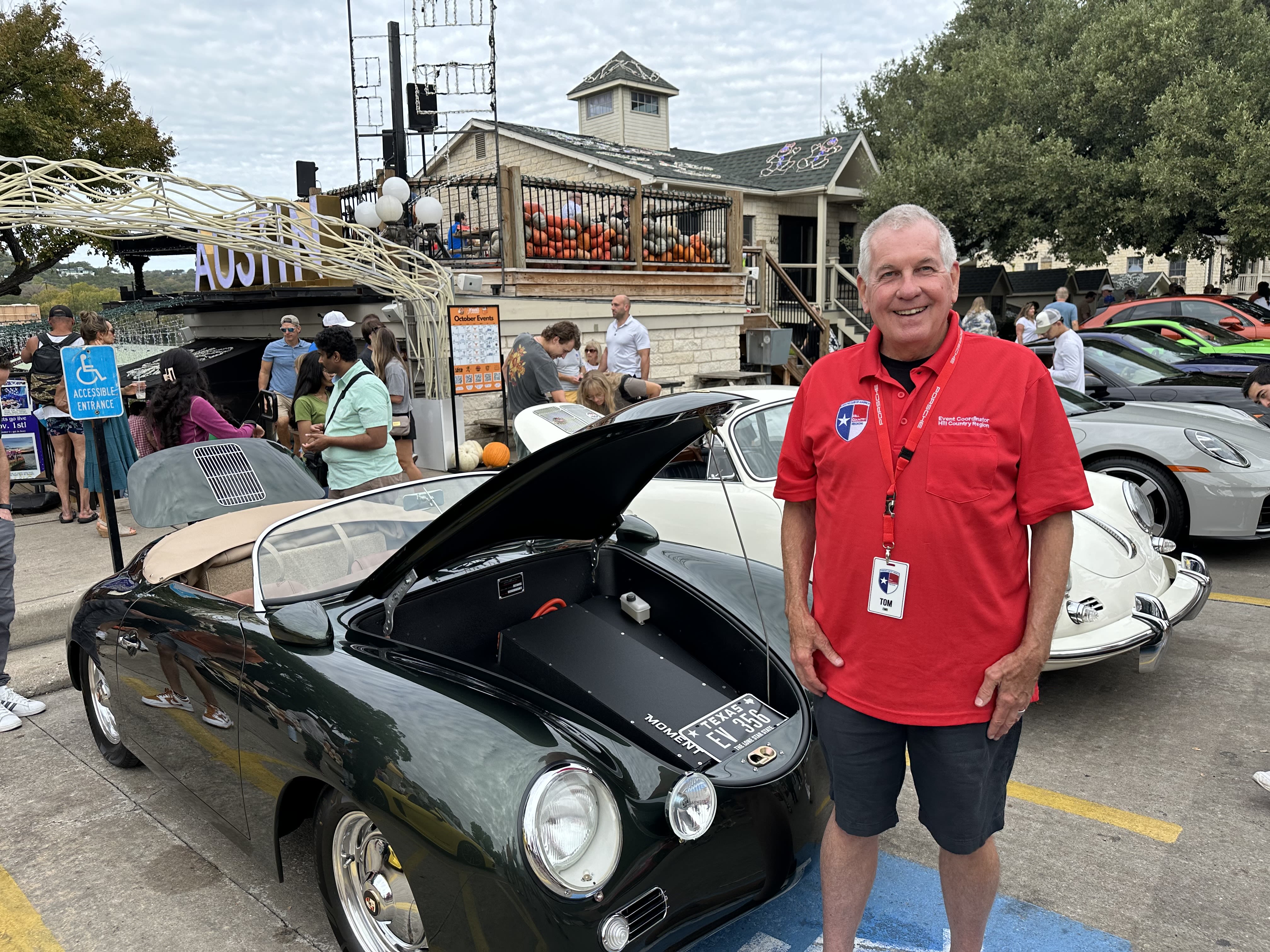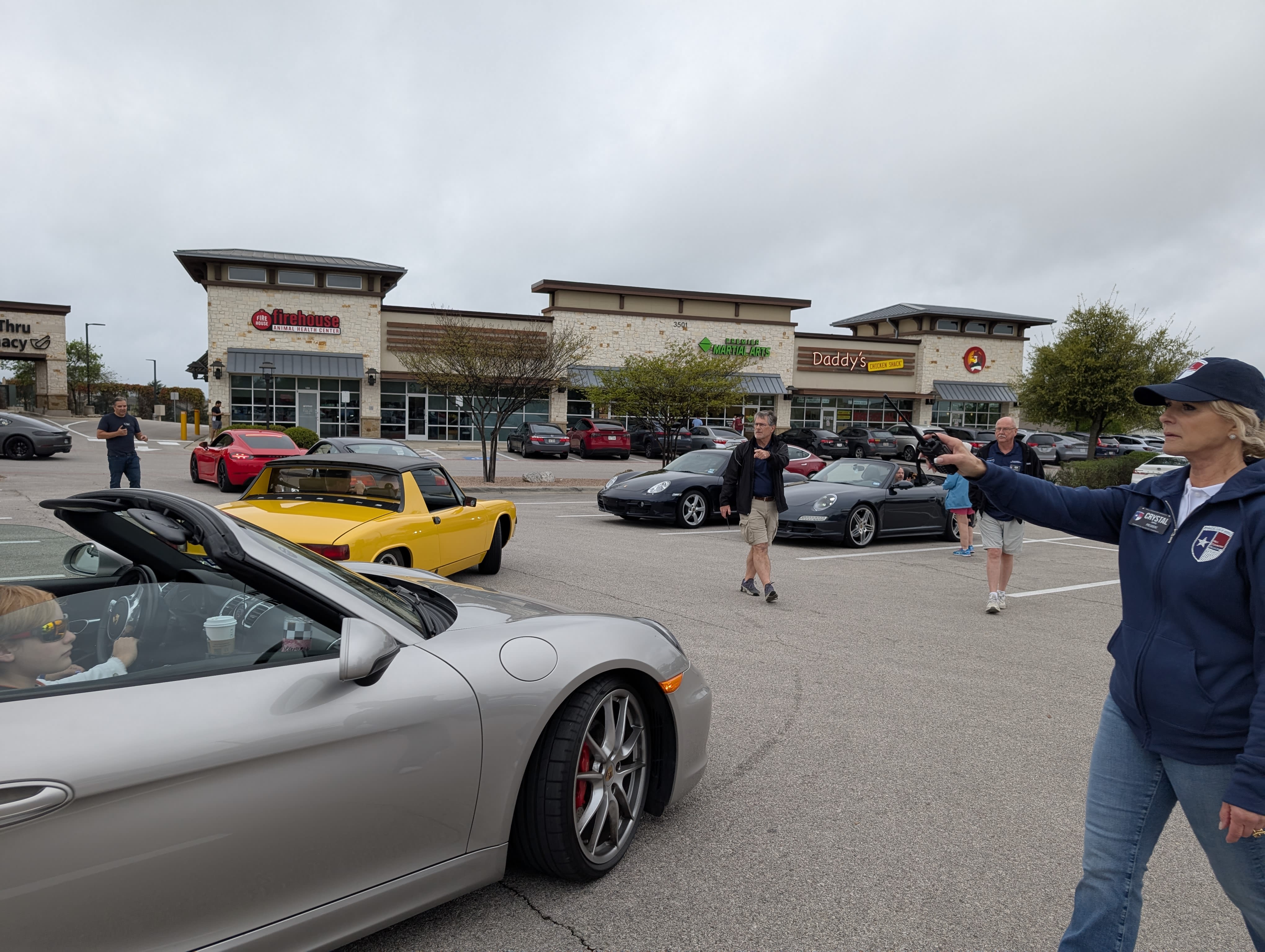 It’s a cloudy morning in Leander as people begin to arrive. Will it rain after all? There are a few sprinkles in the air but some are braving it and keeping the convertible and Targa tops down.