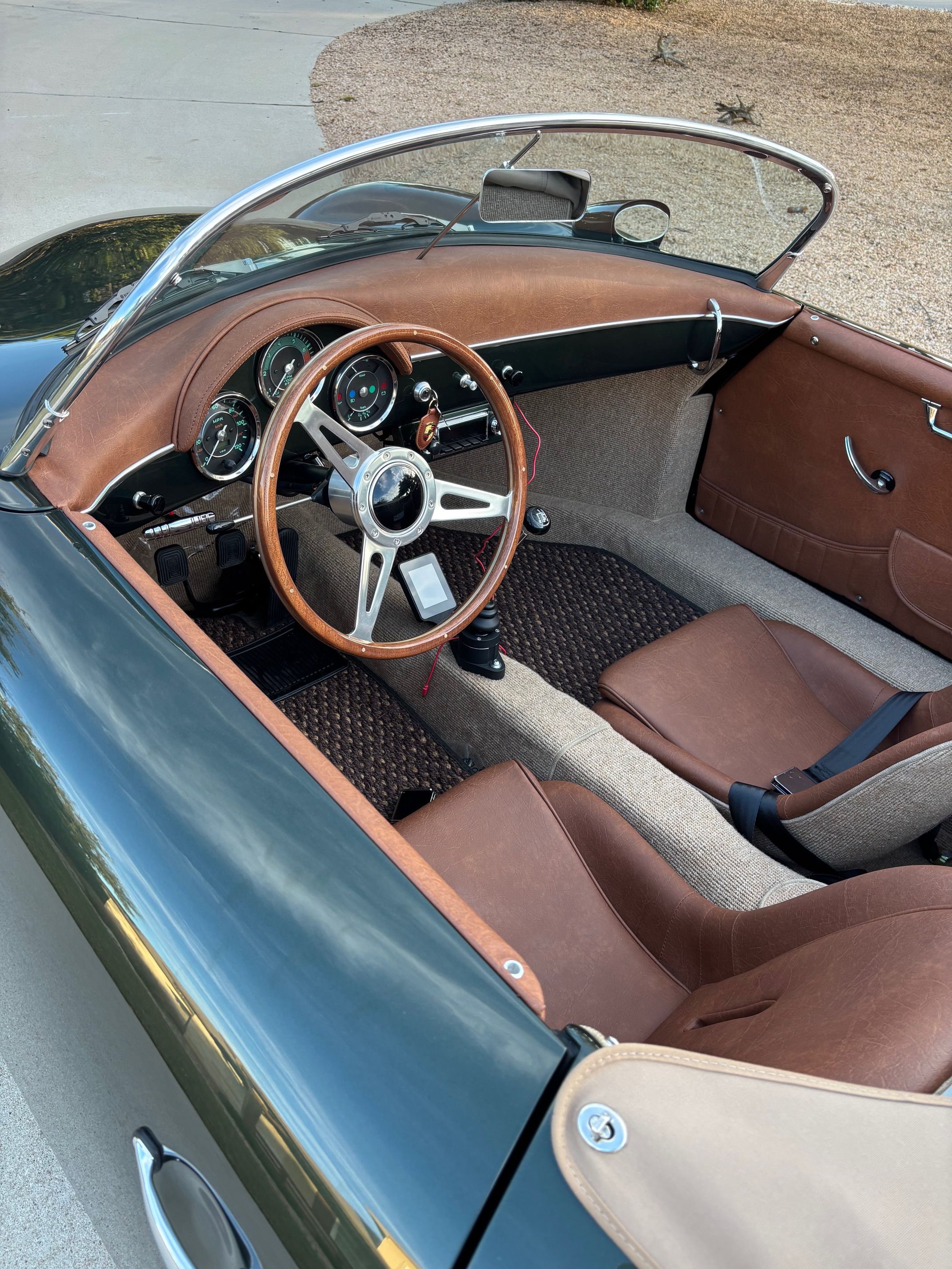 Tom had one other beyond stock idea in mind. He learned that a manual 4-speed transmission (a transaxle) could be installed into his EV Speedster that would enable him to shift gears just like a 4-speed on an internal combustion engine. This transmission has since been installed and has increased Tom’s enjoyment of his EV Speedster experience. Last March, Tom was in Los Angeles for the Porsche Literature and Memorabilia Show. There, he met Zayne Emory, the son of Emory Motorsports founder Rod Emory. They discussed Tom’s 356 EV Outlaw Speedster and how it was a tribute to the cars that were built by Zayne’s father. Zayne told Tom that an Emory 356 can take up to four years from sourcing the donor car until final completion, and he thought that Tom’s EV Speedster replica was a good alternative. Getting a nod from Emory—the originators of Outlaw 356’s—speaks volumes about the innovative nature of Tom’s project.